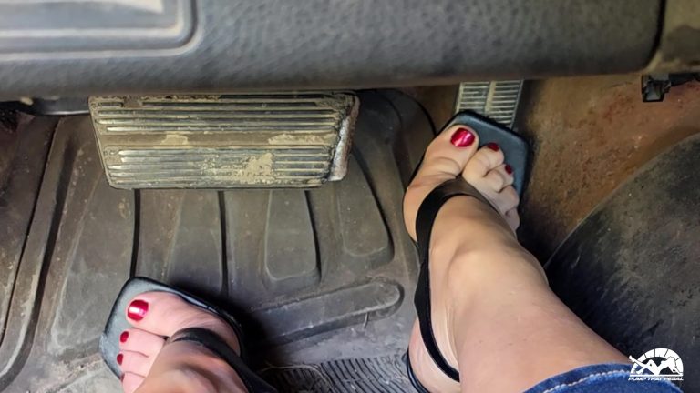 Some POV revving in these stiletto lace-up boots to get the car warmed up while I’m inside paying the bill. She’s romping on it a little and is ready to take it for a drive now. She gives it a few more revs then puts the car in gear and