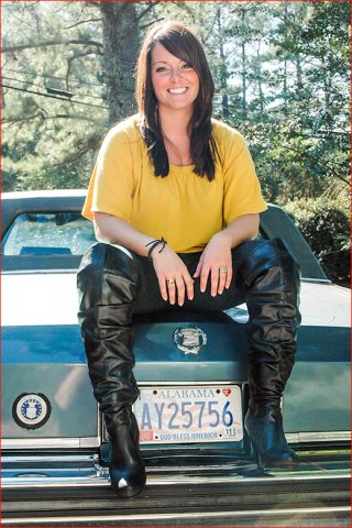 She’s cranking the old Volvo this chilly morning in some knee high combat-style boots and leather driving gloves. It’s temperamental on cold mornings and puts up a good struggle as she cranks it many times. It sputters, chugs and coughs to life finally and she does some revving to warm