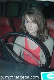 She stalled the old Bus and the beginning of this part is her trying to get it started again. She’s aggressive on the pedal because she’s at a stop sign and doesn’t want to block traffic. Her barefoot is just going to town on the gas as she’s repeatedly begging