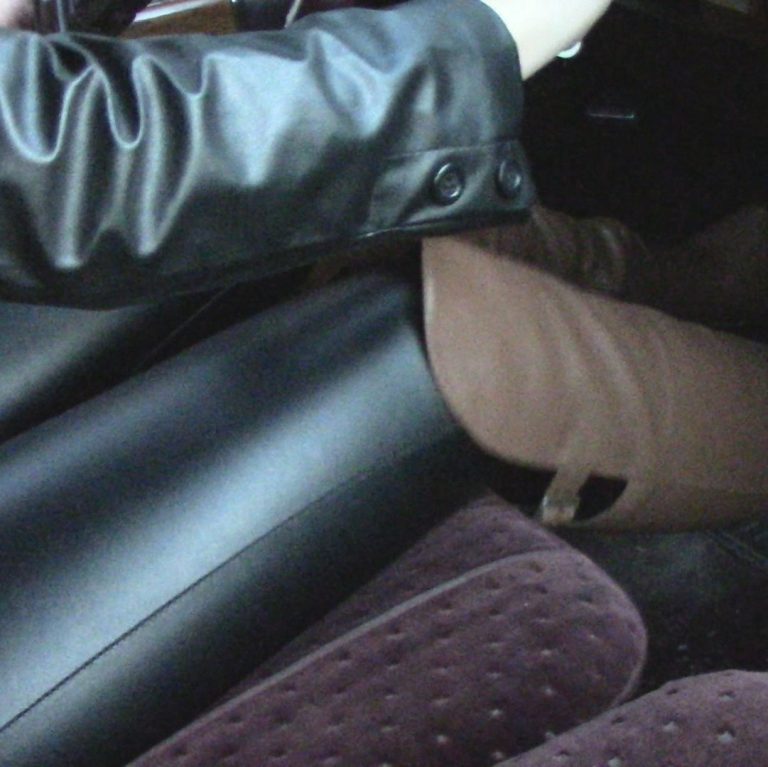 Trying to get the long stick into the right gear can be a little tough. She rams it into the gate and pulls out and gets on it. She’s in these patent peep toe stilettos now and giving the bus the business! After a while, she kicks off the shoes