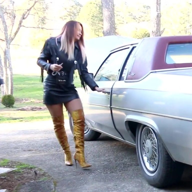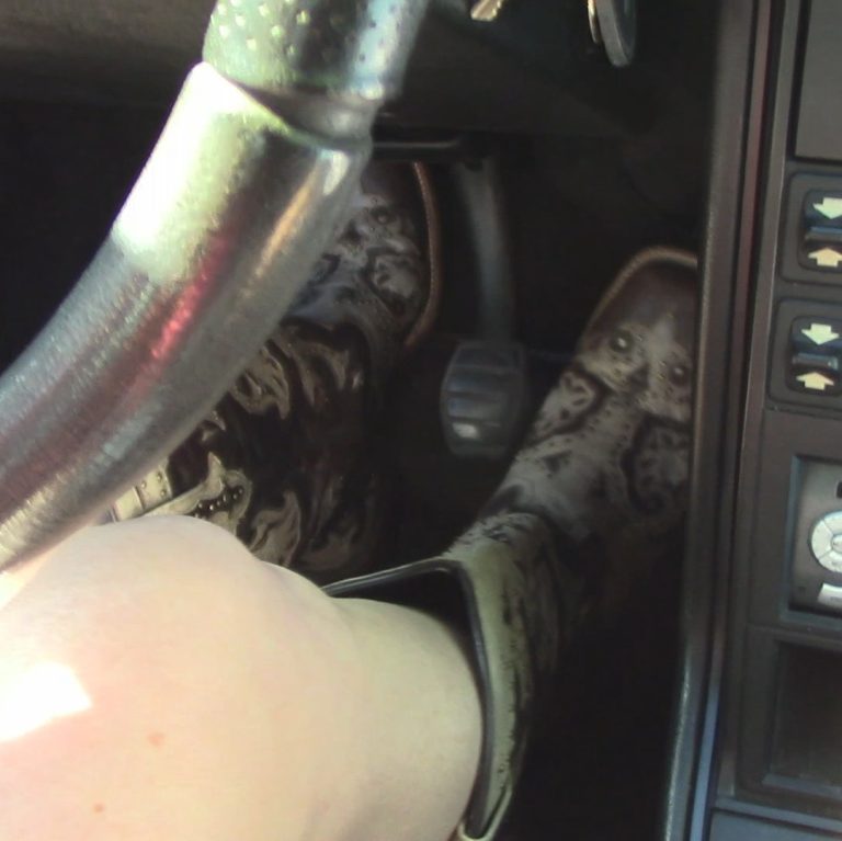**Please see latest blog about what’s coming soon: Site Overhaul Info** She hops in to try and get the Cadillac started while I film from the open drivers door. She’s wearing those yellow snakeprint boots, a short leather miniskirt and fringe leather jacket. She’s pumping the gas aggressively trying to