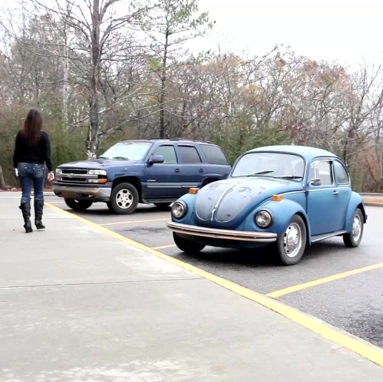 She’s on the main highway now and opening up the throttle on the Bug to keep up with the flow of traffic. She’s getting close to her first stop, the post office. She gets guided into where she’s got to go since the windows are foggy and, well, she’s just