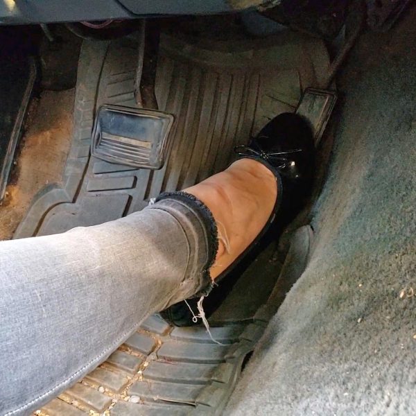 Brooke Floods Your Car in Black Patent Ballet Flats