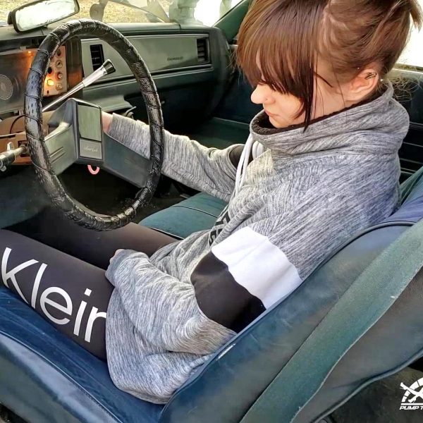 Kimberly Heart Cranking the Z28 in Leather Outfit Rubbing Thigh