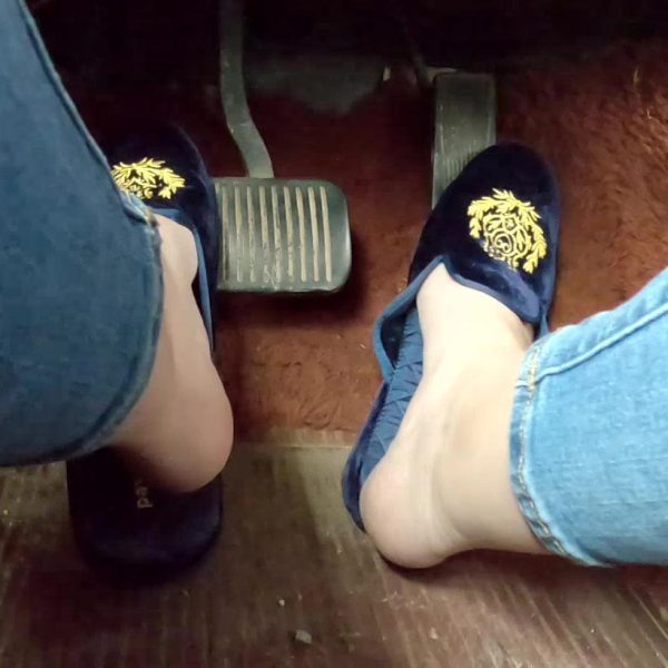 Paige is in the old Jeep and playing around with it in these blue velvet house slippers. She's practicing her… Read more