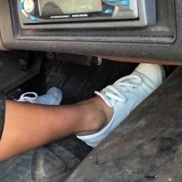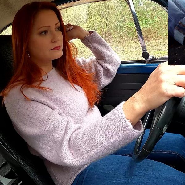 The camera is viewing her legs and feet on the pedals from the passenger side seat. She gets in, grabs… Read more