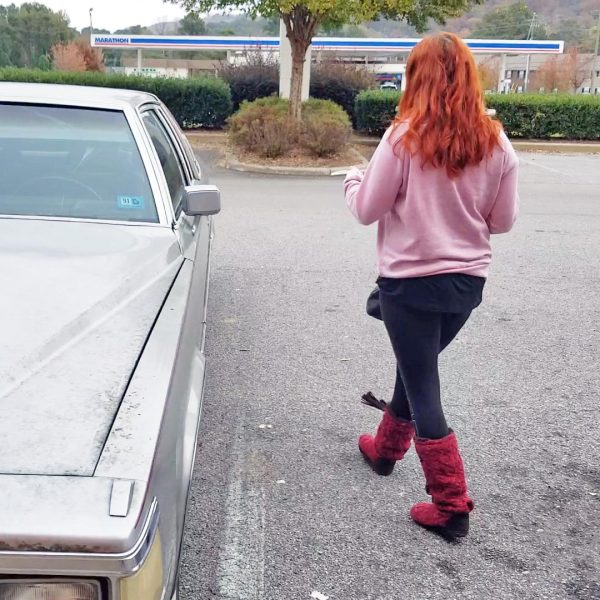 Persephone Pierce Revs the Caddy Black Boots POV View