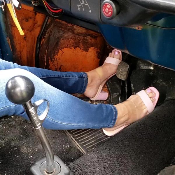 April Lee Firing Up the Bug in Pink Sandals