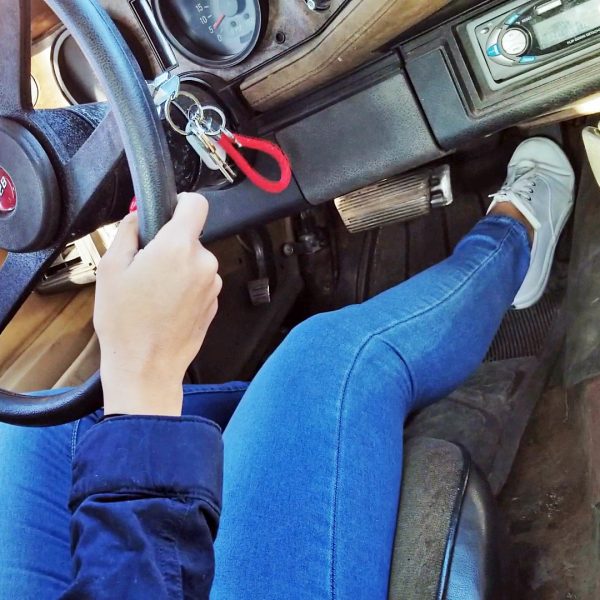 Wearing black, pointy-toed boots under some jeans, Cassandra gets behind the wheel of the Bug and gets it fired right… Read more