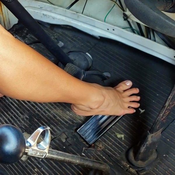 She climbs in and takes her cowgirl boots & tall white socks off before touching the pedals. Once her feet… Read more