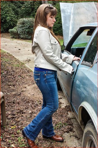 Pawpaw’s old Cadillac is giving Riley fits today as she’s trying to take it out for a drive. It doesn’t get driven often and when she’s visiting, she loves to get the old thing started and take it for a drive. It’s stubborn as hell to start and keep running