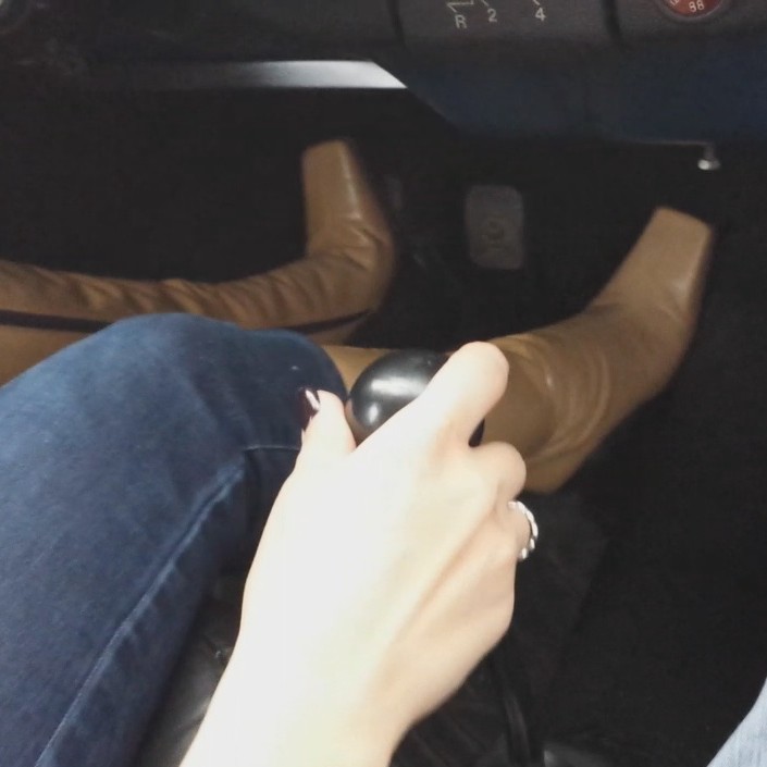 Heading back home and Vivian is driving the Bug in her tan leather Buffalo boots. She gets the car started, gets a little pro-tip on how to backup with a manual easier and starts heading backwards down the driveway. She gets to the turnaround spot aaaaand she stalls the car.