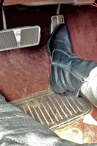 April Lee Taking the Caddy Out in Black OTK Boots, 1 of 2