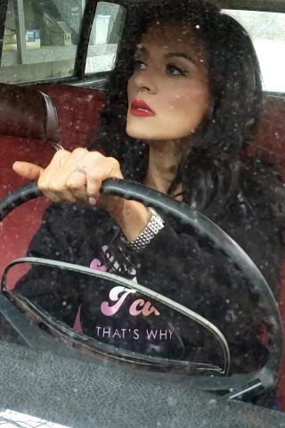 April Lee Cranking the Volvo in Black OTK Leather Boots, 1 of 3