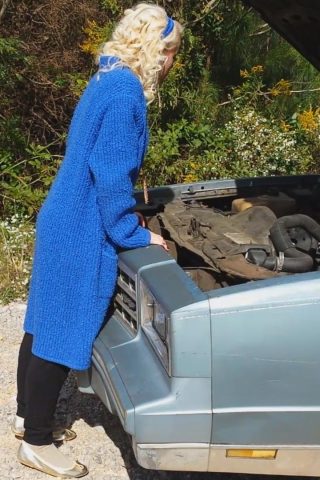Barb Gas Run in the Monte Wearing Pantyhose & No Shoes