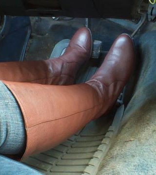 Cassandra POV Cranks & Revs the Volvo Black Leggings & Knee High Boots