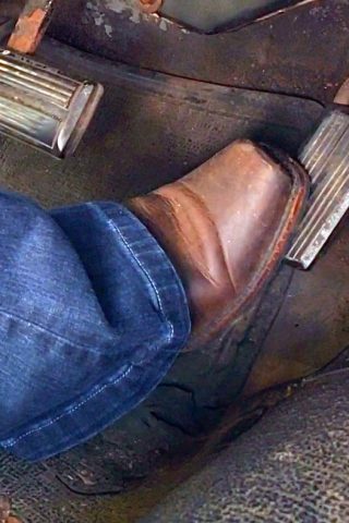 Ginger Frye Boots Trying to Start the Cadillac