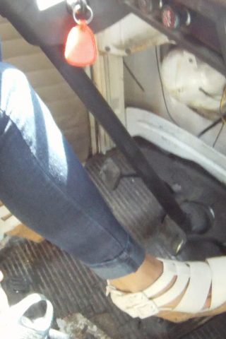 Jane Domino Floods, Starts & Revs Caddy in Tan OTK Boots POV