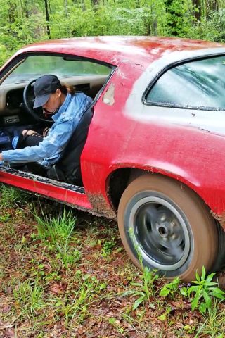 Jane Crank & Revs the ’77 Z28 in Red Strappy Sandals