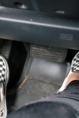 Jane Domino Driving Her Honda Truck in Black & White Checkered Vans
