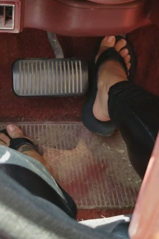 Jane Domino Moving Jeep in Shiny Pants & Flip Flops So I Can Mow