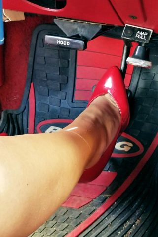 Jewels Starts Up, Revs & Moves the Volvo in Black Strap Flip Flops POV
