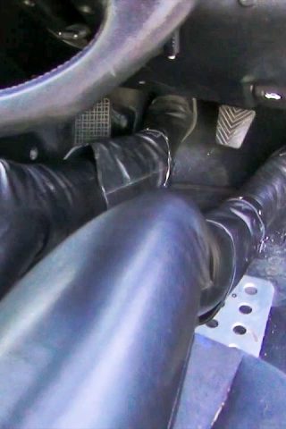 - September 12, 2021- Kate Cranking the Mitsubishi Galant in Black Leather Pants & Cowgirl Boots