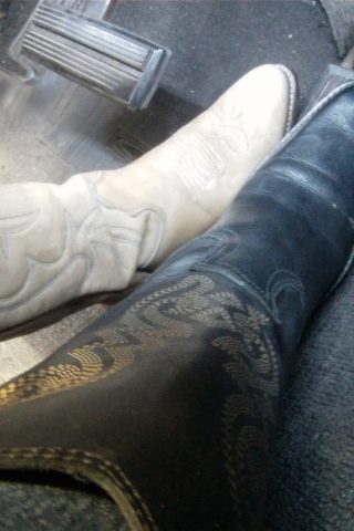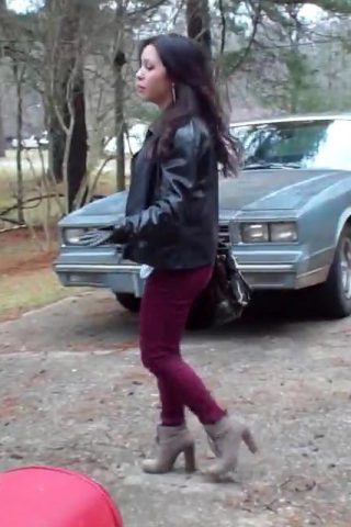 Mari Cranks & Hard Revs the Volvo in Heeled Tan Leather Booties