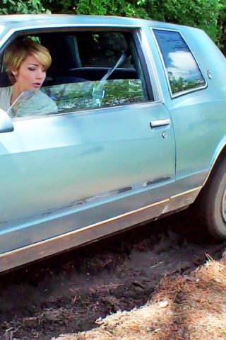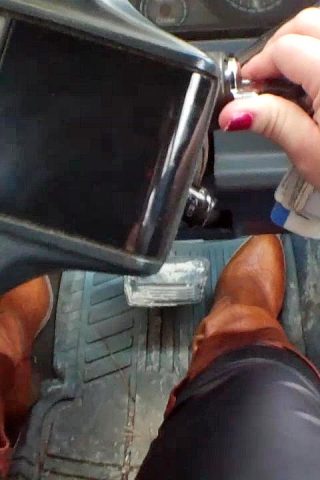 Scarlet Driving the Jeep in Brown Frye OTK Boots POV