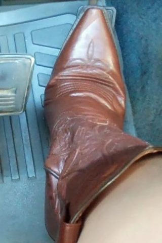 Scarlet Cranking & Driving the Volvo in Gray OTK Boots