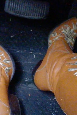 Vivian Ireene Pierce Rainy Day Running Errands Orange Cowgirl Boots