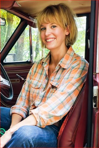 Got all the gear loaded up in the Jeep and heading out. She’s wearing a red leather jacket, black leather jeans and red leather stiletto boots under her jeans. The Jeep takes a few tries to get going as it’s chilly this morning and it’s a bit cranky on it’s