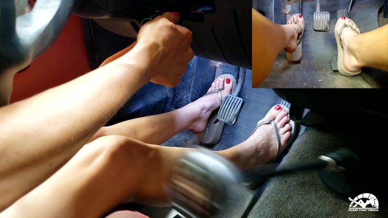 Driving scenes that were leftover from customer #1273 where she’s driving her truck around running errands. She floors it in her black leather pumps and you can only imagine the double-takes she got in that outfit. An oversized button-up shirt, sheer pantyhose and those black pumps …that’s it. HelllooooOOOO!