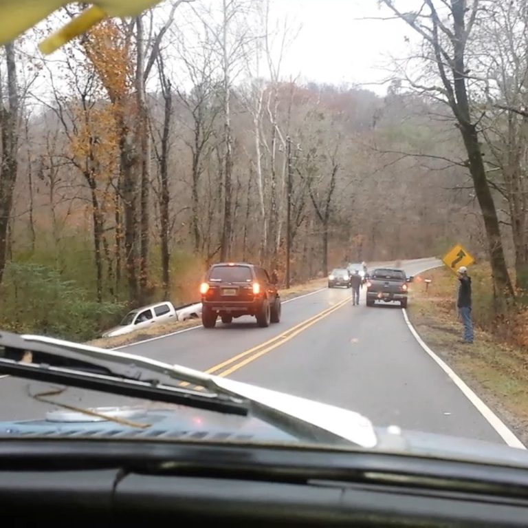 Let’s finish up this series with part 6 — Vivian is driving us the final stretch home. All is good until we come to some accident in the road and cars are stopped. Come to find out, a truck slid off the road and they guys pulling them out make