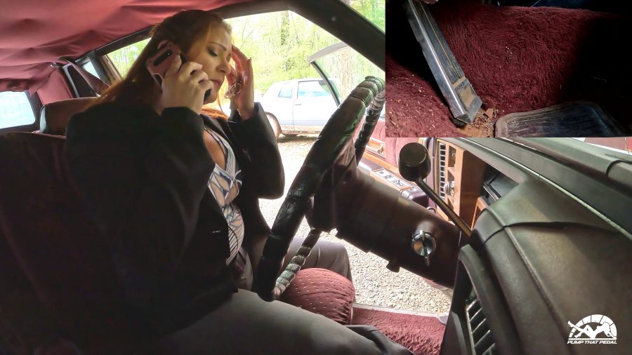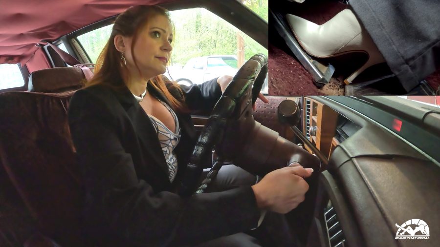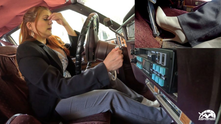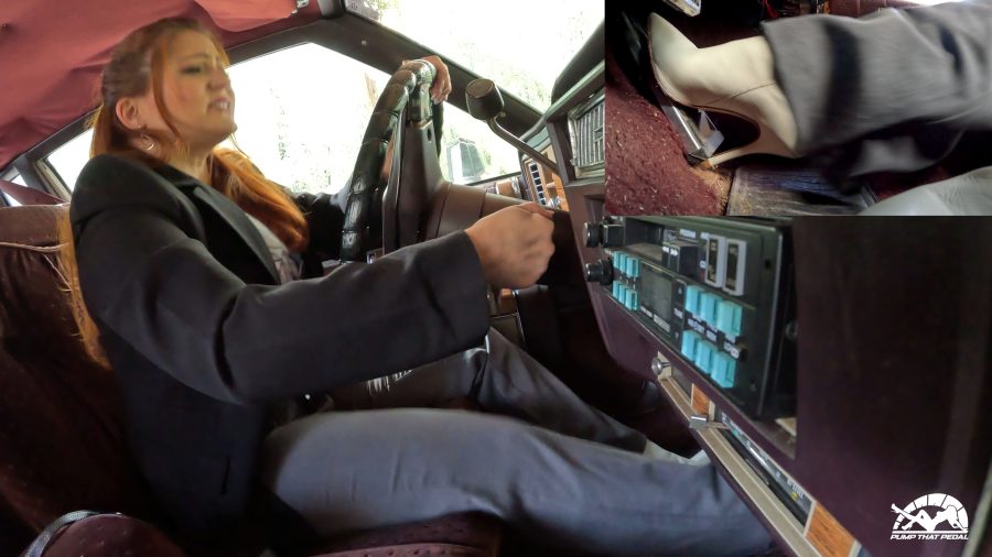 I love seeing Vivian dressed up like a secretary and me being the boss tells her to take my old Cadillac to the shop to get the oil changed. I know she has driven it before and had car trouble in it so I’m hoping it will happen again. The video starts with her walking to the car talking about the task I’m asking her to do. She talks about how it broke down on her last time but that wasn’t her fault. She knows about these old cars and says she had an old Monte Carlo like the one he has in the background.