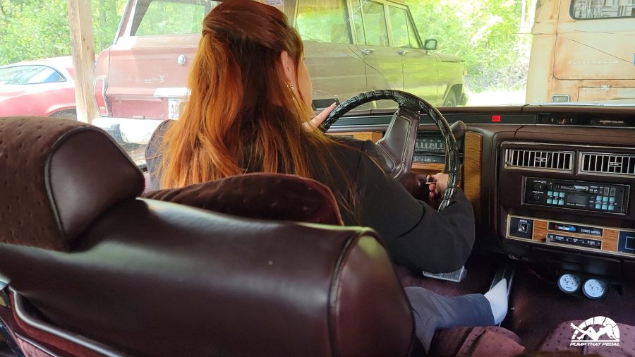 I love seeing Vivian dressed up like a secretary and me being the boss tells her to take my old Cadillac to the shop to get the oil changed. I know she has driven it before and had car trouble in it so I’m hoping it will happen again. The video starts with her walking to the car talking about the task I’m asking her to do. She talks about how it broke down on her last time but that wasn’t her fault. She knows about these old cars and says she had an old Monte Carlo like the one he has in the background.