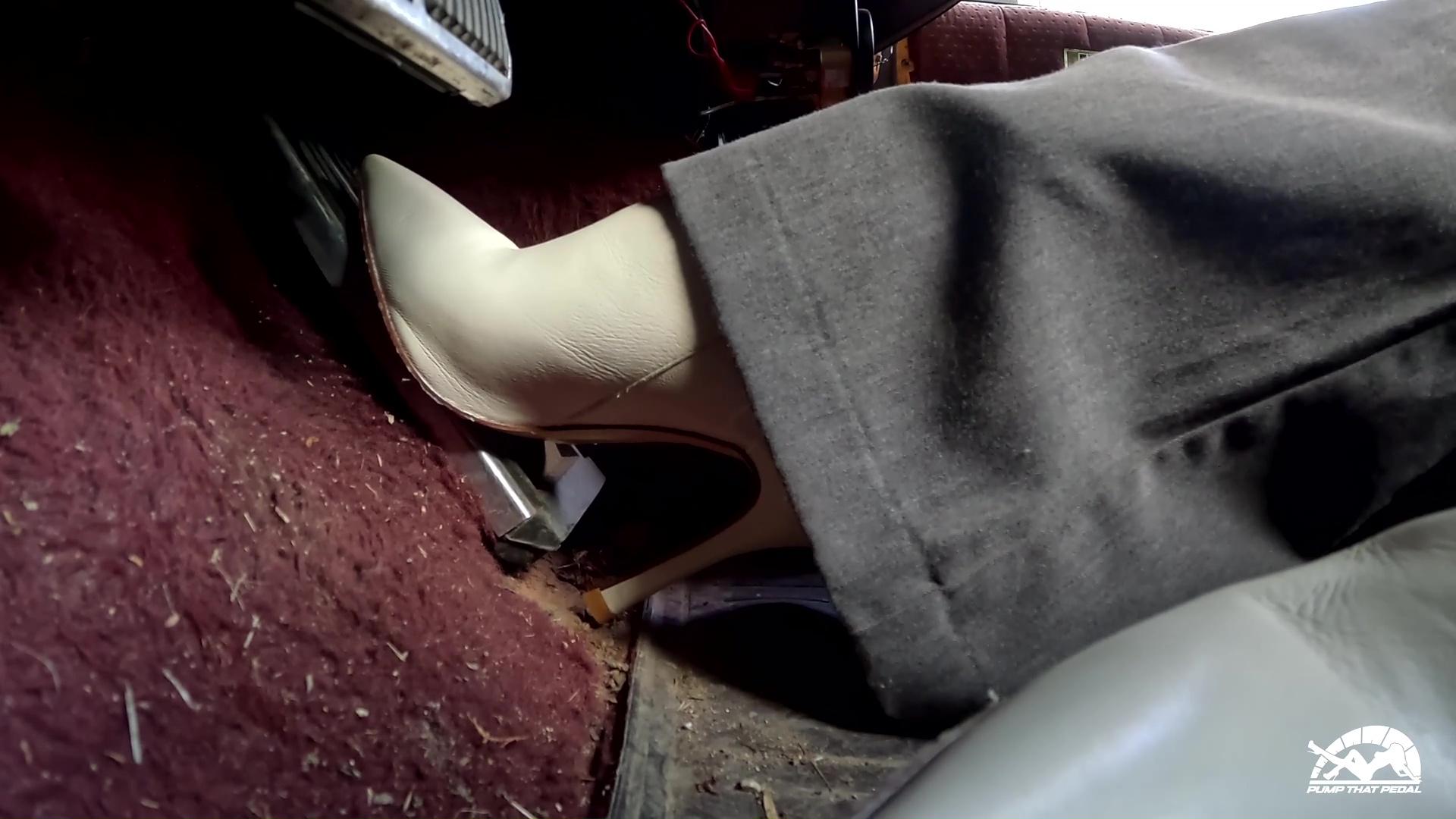 -she has bursts of aggressive pumping with her full leg so the cuff part of the pants around the ankle shake a lot from her firm pumping. Don’t overdo it or anything, just her natural aggressive pumping she gets sometimes when the cars are being really frustrating.
