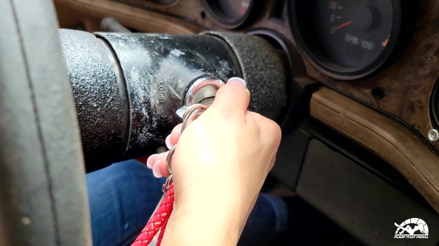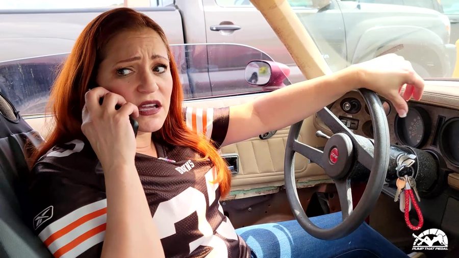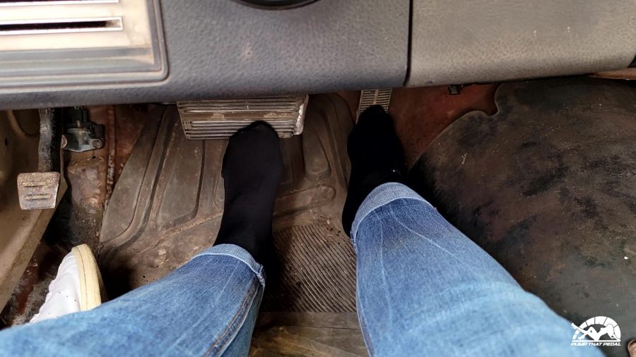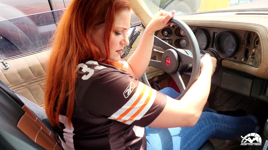 Show some full body of her cranking and pumping on passenger side and even some POV in both shoes and tights and a few closeups of her hand twisting key