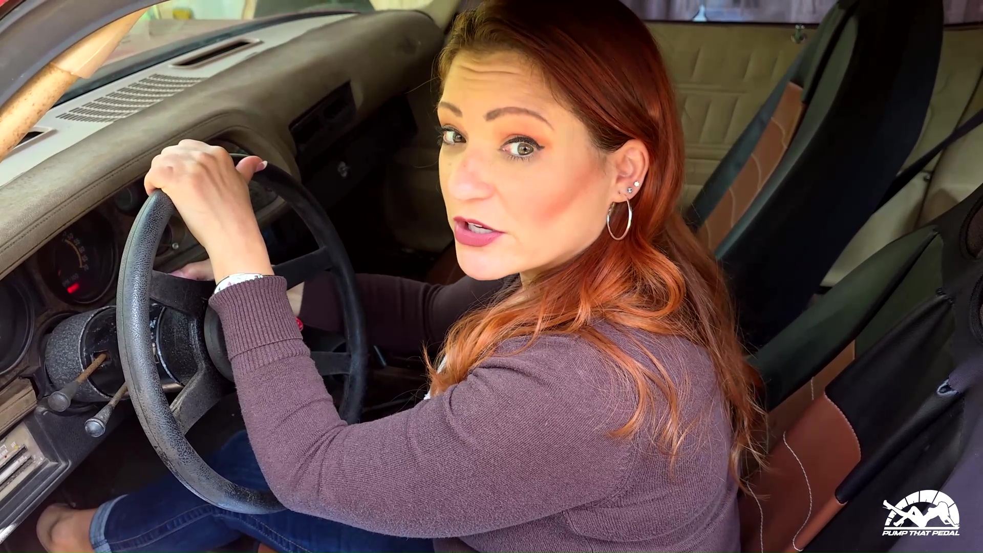 Vivian needs to go out and run some errands, but her old beater is giving her trouble. She tries different pumping methods, but the most she gets is sputtering and chugging from the engine. About halfway in, she gets hubby from the house to see if he can help or offer up any advice. He tells her she is being too heavy on the gas, which she doesn’t seem to be a fan of. She continues to stay stubborn and ends up not being able to get it started. She gets out and pouts her way back to the house.