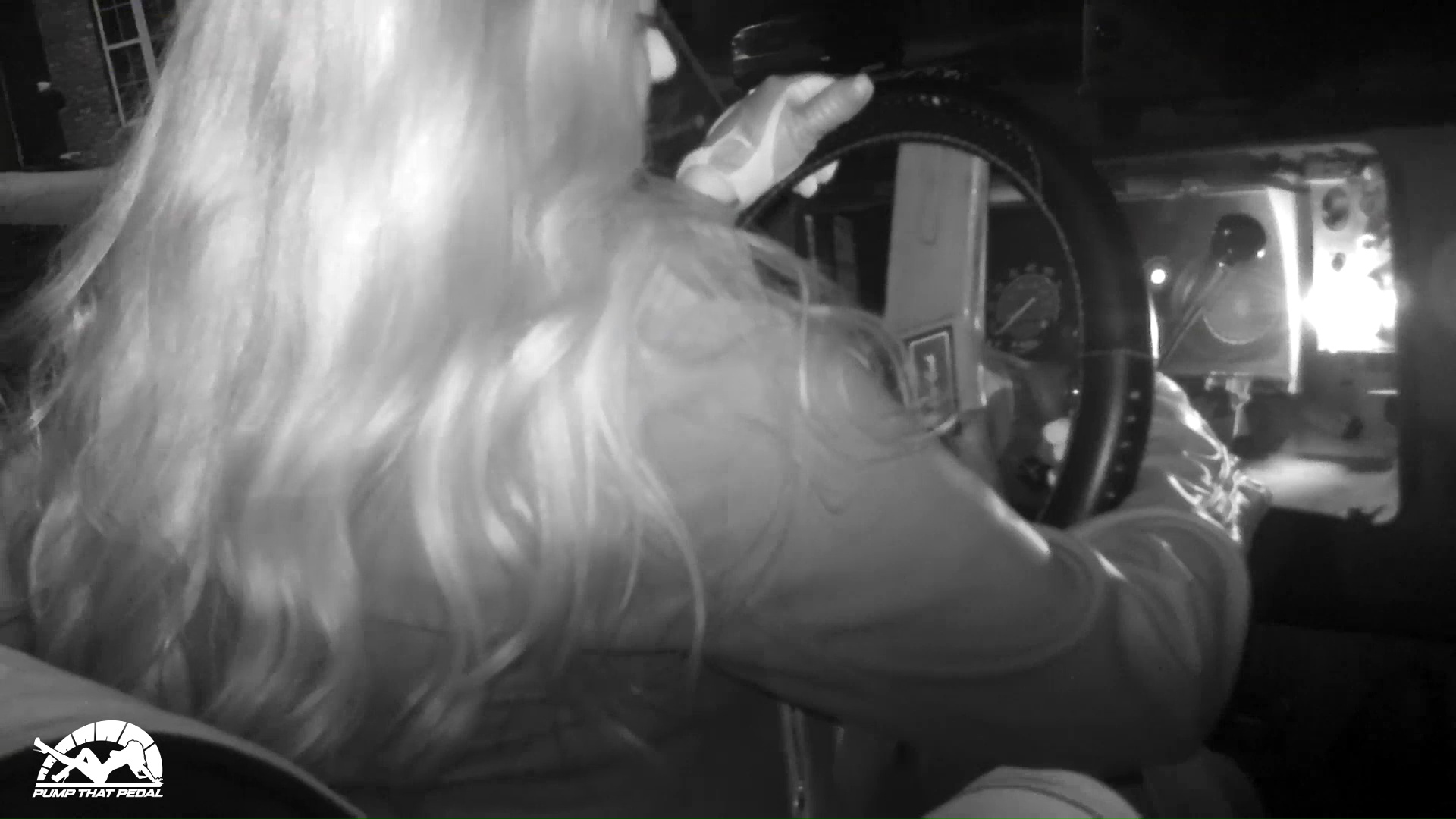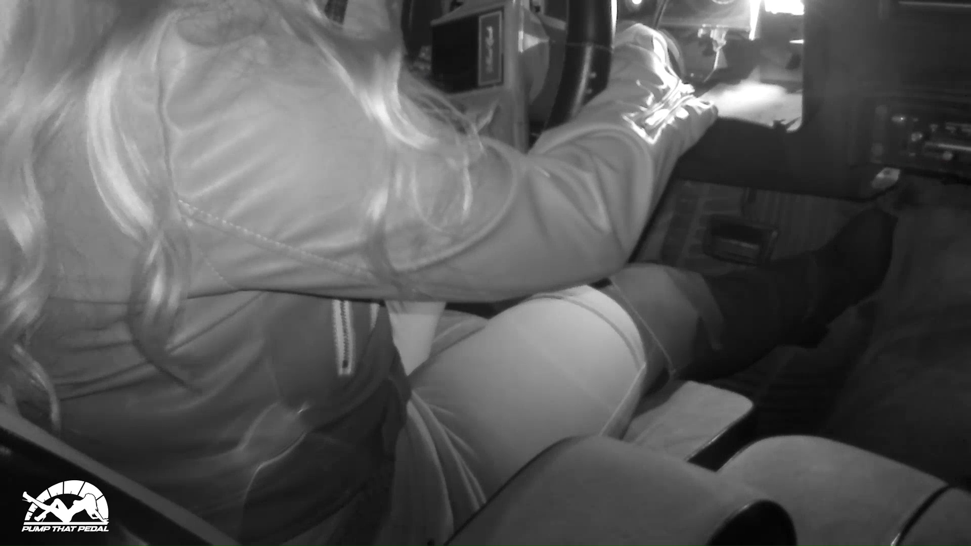 Start from the back seat looking over her shoulder and get some full body with a few close ups of her legs and the pedals