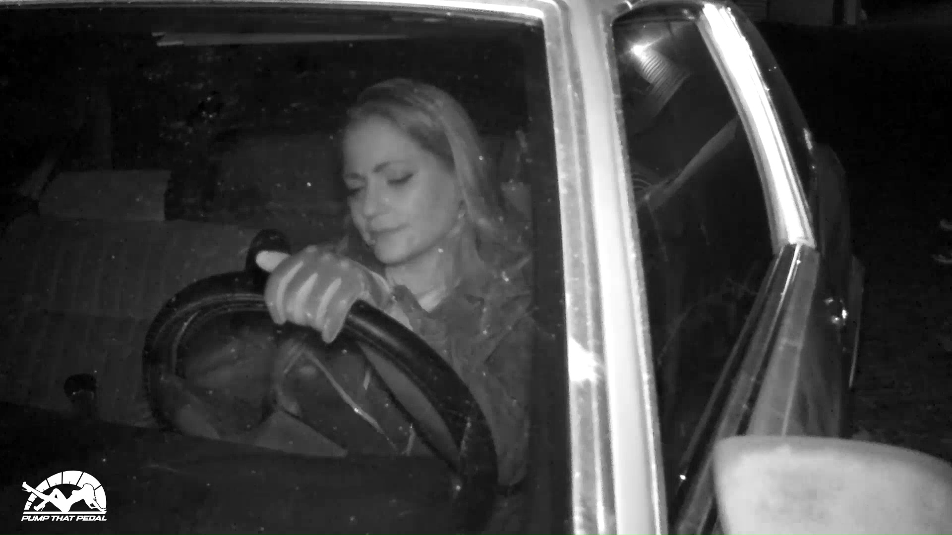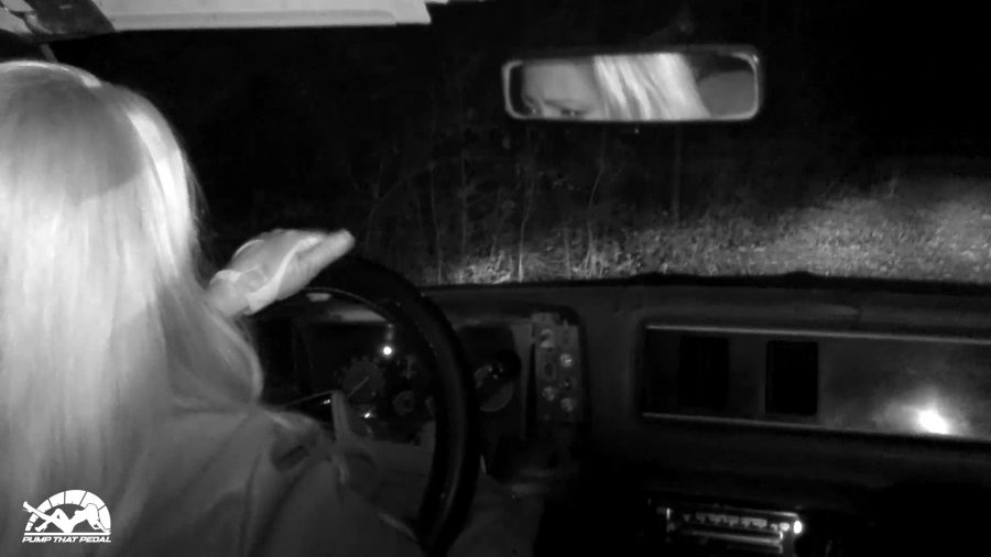 Vivian comes out to the car with the camera filming from the backseat. She gets in and tries to get the car started but it’s not starting. She can get the car to sputter and start but stall when she tries to drive off. As the video progresses, she is moving inch by inch down the driveway until she is away from the house where it’s dark and in the woods. She’s getting more nervous and finally gives up when the car just won’t start. A shot of her walking away towards the house ends the video.