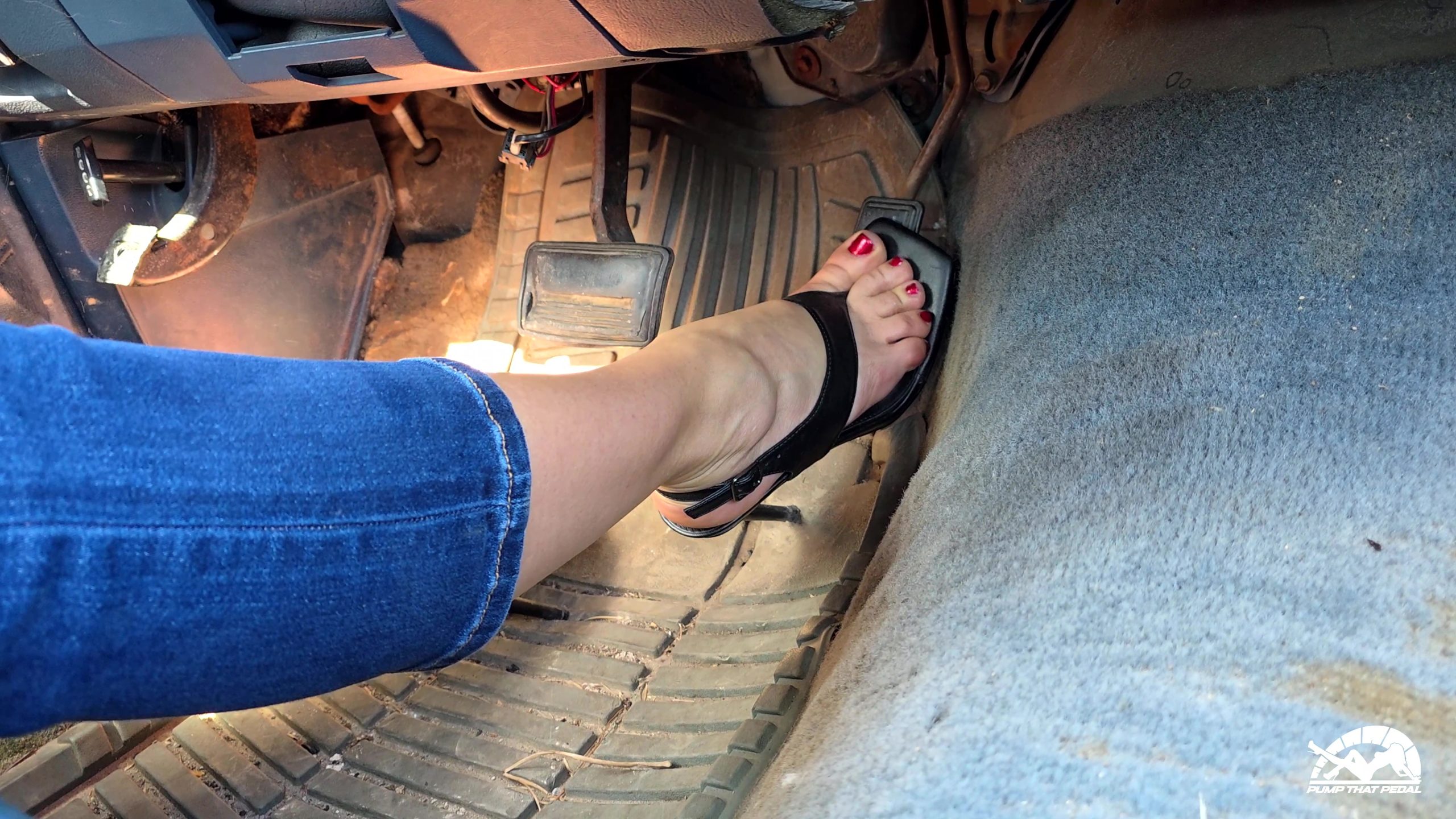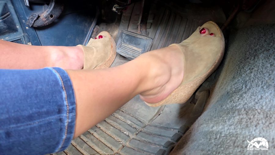 Sen2. in the Peep toe Mule this time it’s a little easier to start passenger side camera angle. She notice you looking at her feet again. This time she pumps it and revs it noticing you like it when she revs it up (She ask ” so you like my feet” you like watching me romp on the gas pedal). The car dies and she curses a little and cranks it back up. drives off really putting the pedal to floor (lots of close up from the passenger side of her feet on the pedals)