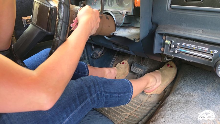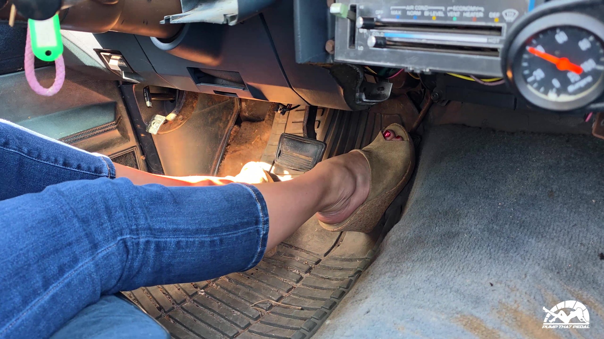 Part 1: 5 minutes Viv goes out in shoe1 one to start up the Monte Carlo camera catches her walking to car and sliding in. (passenger side view, plenty of close up of her feet as she primes the pedal and cranks it over. It’s Hard to start so she has to pump different ways… Hard and holding it to the floor. she makes comments as I don’t know what wrong with this thing. She get’s it started and pumps the pedal to clear it out. She notice you are looking at her feet. She smiles and revs it a little more and ask if you like her feet. Then she takes off. last seen shows Her really flooring the pedal close up and a Viv classic smile.