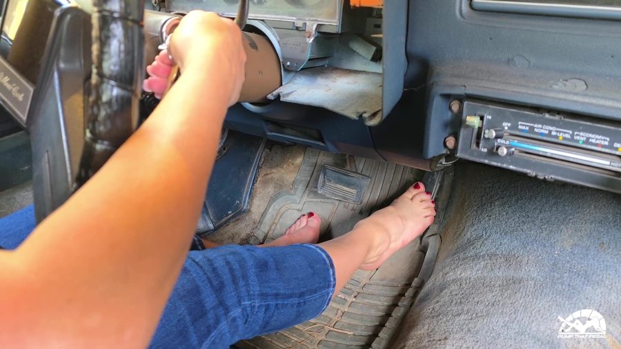 She is sitting in the car already when the video starts and you can tell her to move the car somewhere. Preferably, this will be after the car has ran and the engine is hot so that it will flood more easily.