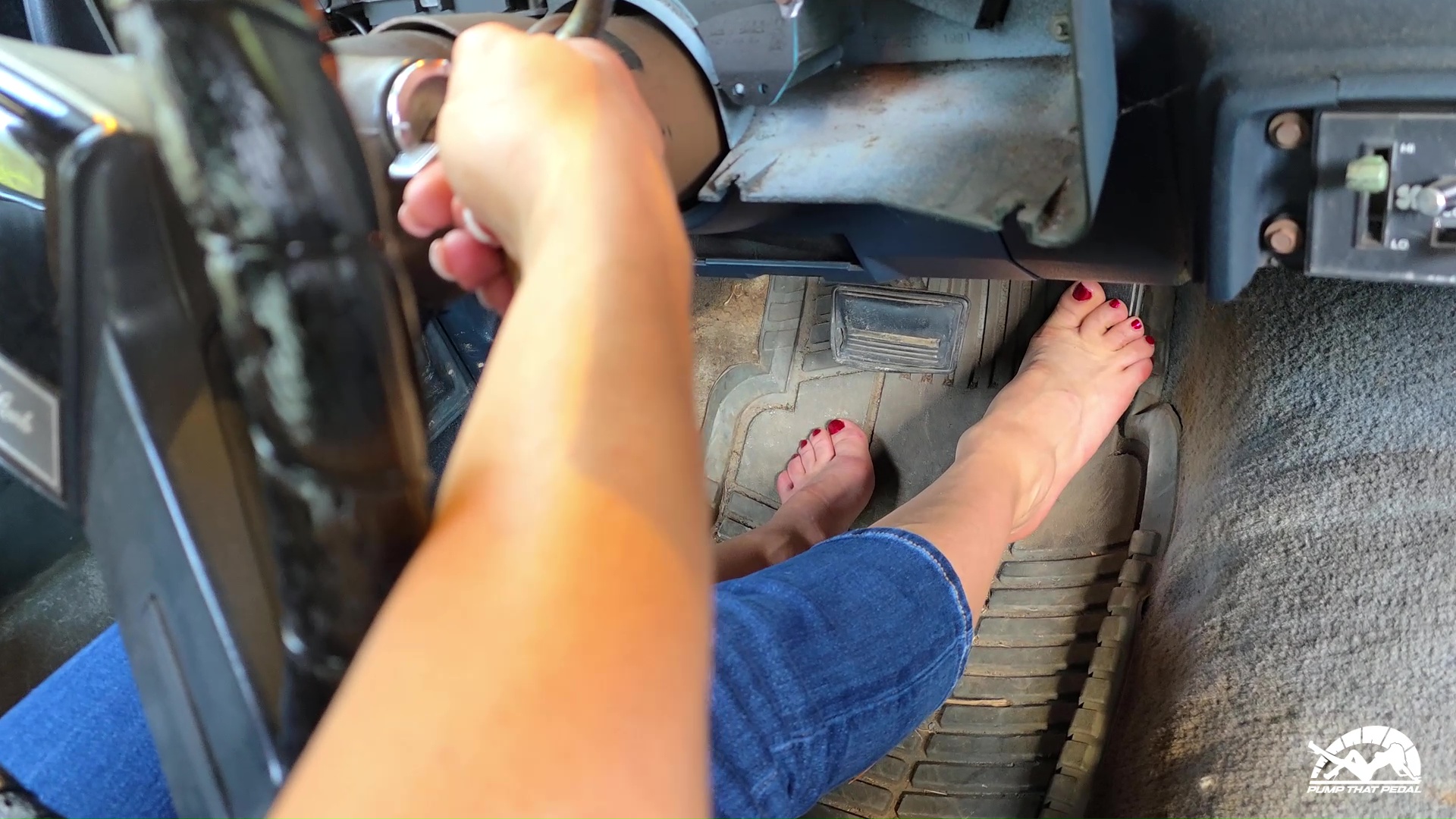 Filming from the passenger seat, you tell her to move the car and she kicks off her shoes and throws them into the passenger floor. She thinks she’s going to move the car so when it is (hopefully) hard to start, she’ll really try to get it started. I’ve seen in many videos of her over the years many moments in various videos of when the girls shift into their “really trying” mode. Their face changes and their body and pumping changes. It’s so wonderful to see those moments mixed in and finding those little gems makes watching every video worth it!