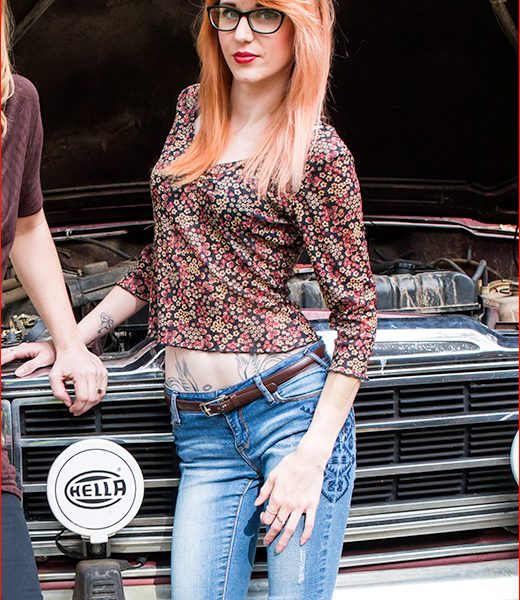 Scarlet’s driving the old Chevy in a leather jacket, pantyhose and ballet flats while she…