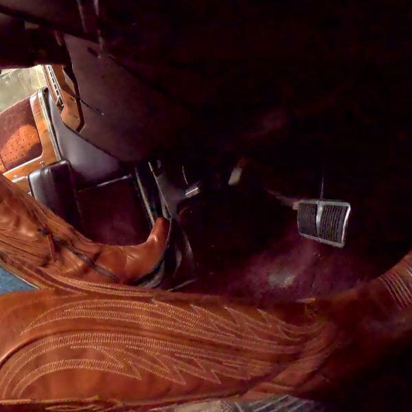 Jane is sitting in the passenger seat filming and waiting for Jewels to change out…