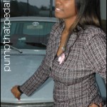 Lyndsey slides into a new Cadillac wearing a pair of black knee-high boots with a…