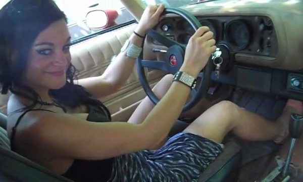 Jane hops in the old Camaro while filming from her POV. She’s wearing tight jeans…