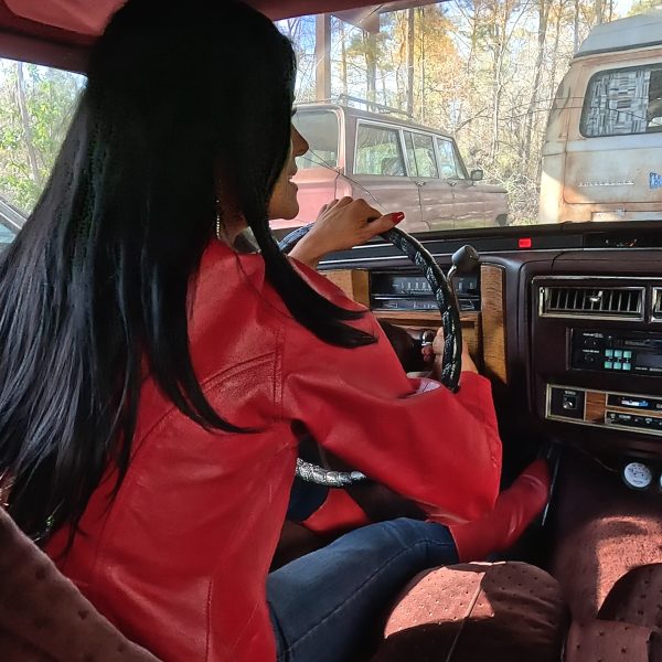 She gets in, starts the car and heads out for a drive in her moms…